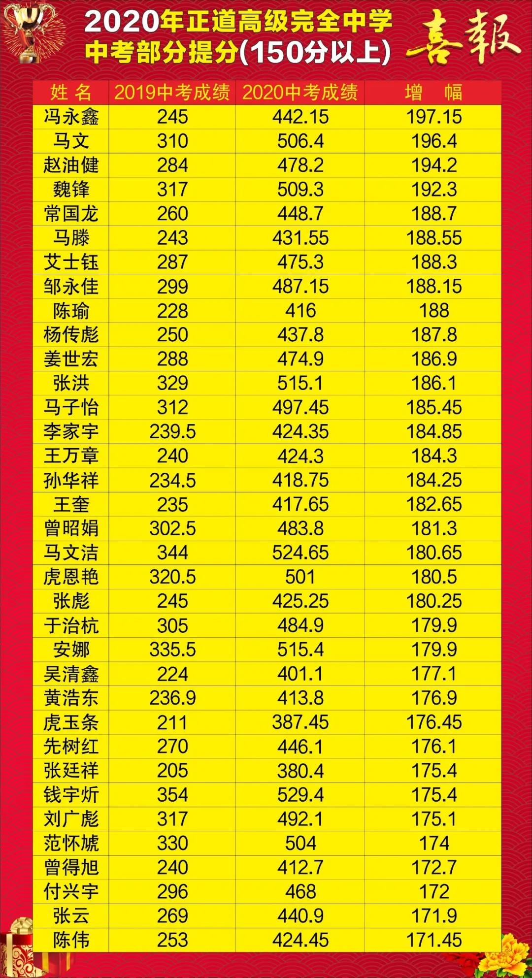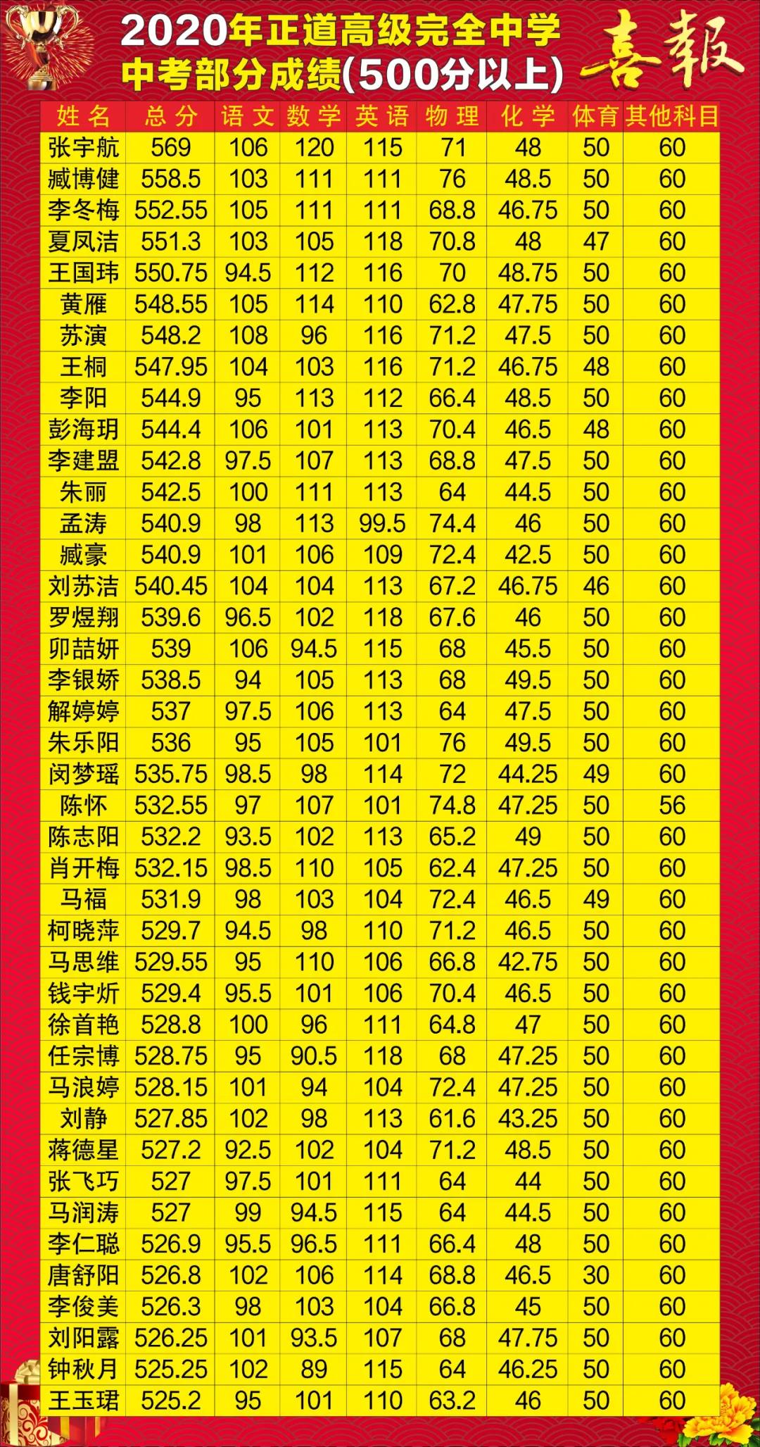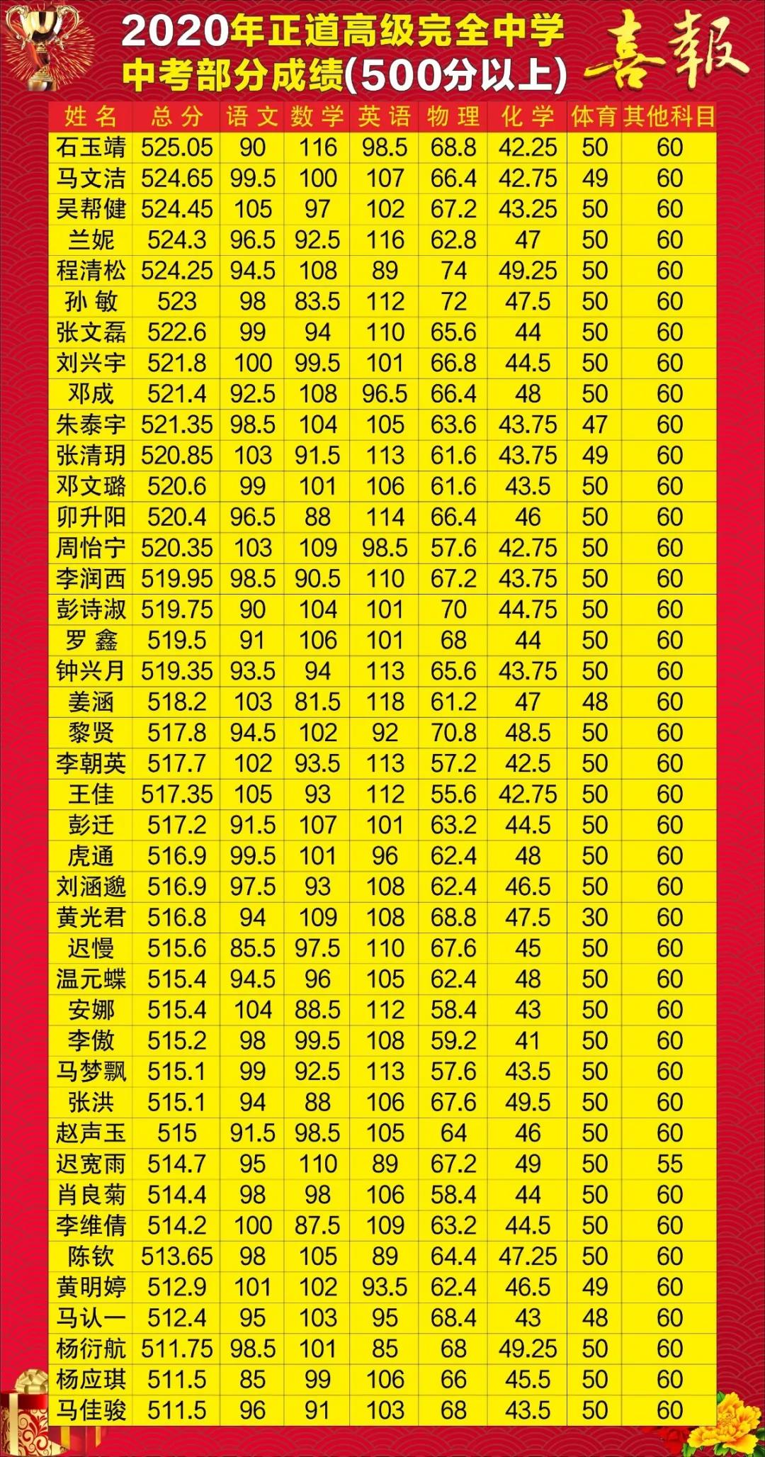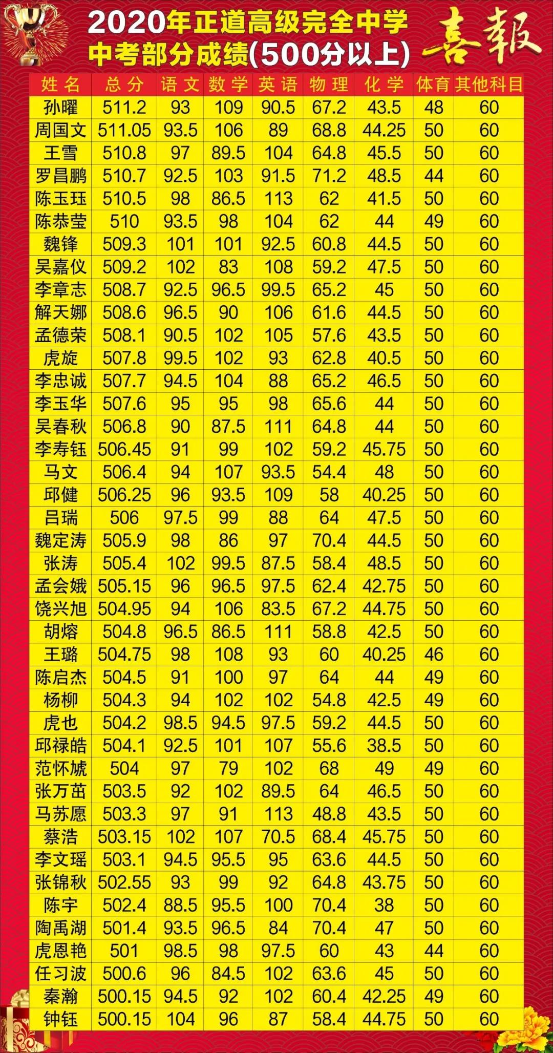 2020年中考成绩(500分以上)