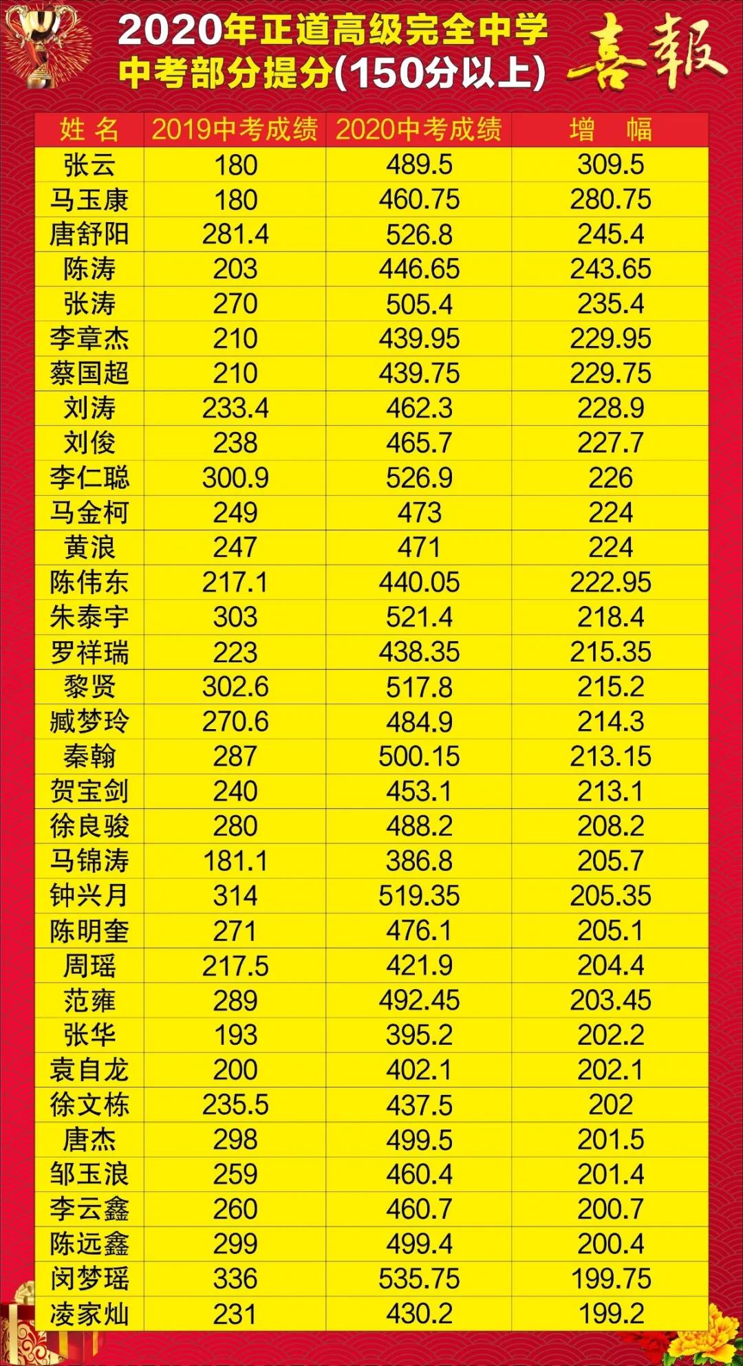 初三补习中考平均提分132.3分,其中张云同学提分达309.5分,提分100分以上387人,全校普高上线率99.84%。
