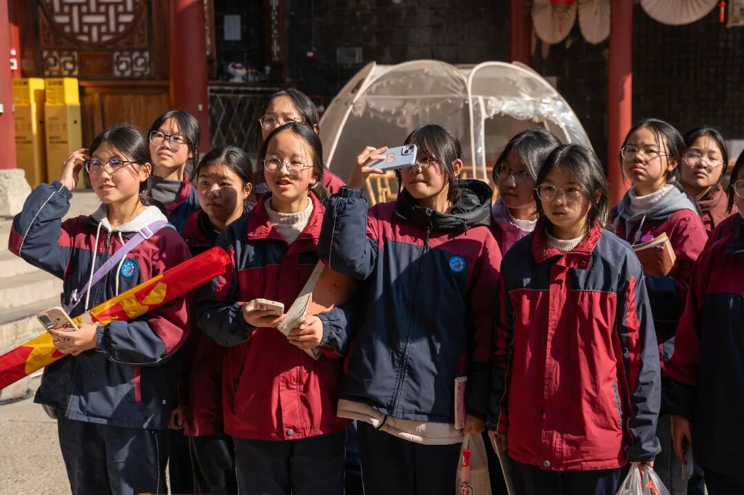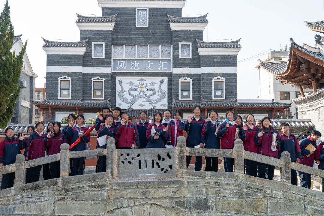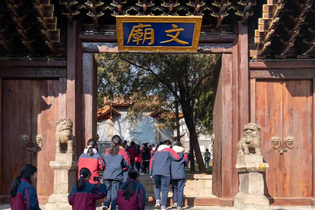 踏进昭通文庙,厚重的历史感扑面而来。大成殿静静矗立,梁柱间的雕刻仿佛还在诉说着当年儒学讲习、开科取士的盛景。师生们打卡状元桥,想象昔日学子在此苦读的身影。从清代考棚到东晋壁画,从魁星阁到棂星门,这片庭院承载着昭通二百九十余年的文教根脉,也见证了多民族文化的相融共生。这一次跨越时空的对话让我们深深懂得:历史从未远去,它正透过每一块砖石、每一方碑刻,静静照亮着我们前行的路。